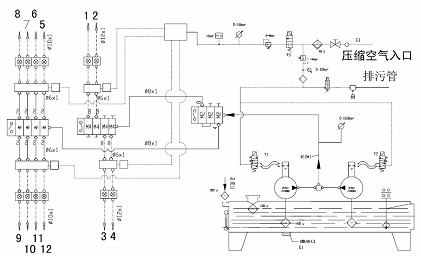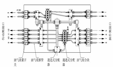 油氣潤滑系統(tǒng)由供油部分、壓縮空氣處理裝置、油氣混合分配(遞進(jìn)式分配器、油氣混合塊、TURBOLUB油氣分配器)以及一套或幾套顯示和監(jiān)視裝置構(gòu)成的電控系統(tǒng)組成。另外,所有系統(tǒng)其主站及所有元件都裝配在一塊安裝板上,并放置于油箱上,而外置油氣配送元件則安裝在受潤滑設(shè)備上或是在靠近受潤滑設(shè)備的地方安裝。